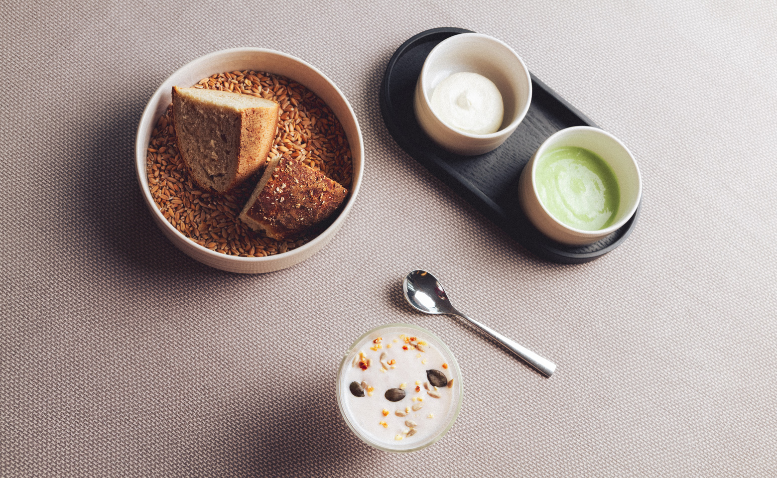 Unser hausgemachtes Brot aus 40-jährigem Sauerteig mit Aufstrichen und ersten Einstimmungen
